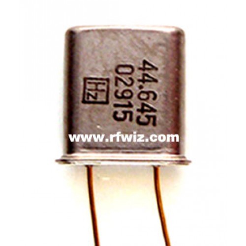 The H0102915 is a 44.645 MHz Mini HC-18/U Crystal used in various Vertex Standard Portable and Mobile Radio models.