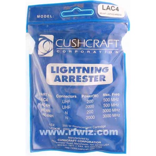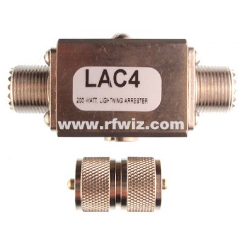 The Cushcraft (Laird) LAC4 is a Constant Impedance Lightning Arrester w/SO239 Connectors rated at 20..