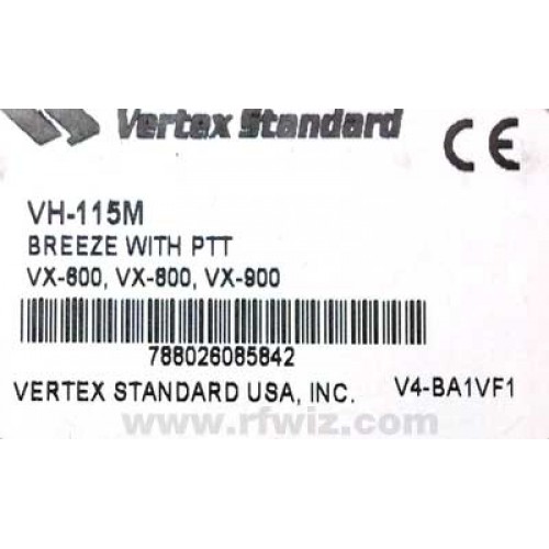 The VH-115M is a light weight Breeze Headset with adjustable microphone position and on cord PTT button speaker microphone. Designed to work on the VX-600, VX-800 and VX-900 Handheld Portable Radios