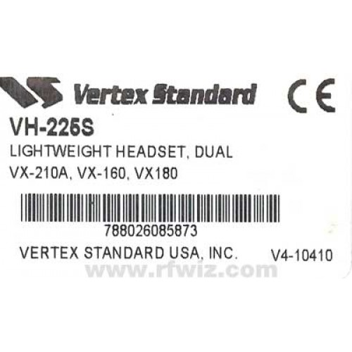 The VH-225S is a light weight Dual Muff Headset with adjustable microphone position and on cord PTT button speaker microphone. Designed to work on the VX-210, VX-160 and VX-180 and other Handheld Portable Radios